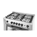 Het HENDI Gasfornuis – 5 pits met elektrische oven biedt 5 branders in combinatie met een grote oven en grill. De branders variëren van 1,8 tot 3,5 kW en zijn uitgevoerd met piëzo-ontsteking. De grote oven biedt ruimte voor 4 GN 1/1-bakken of roosters en wordt geleverd met 2 roosters.
