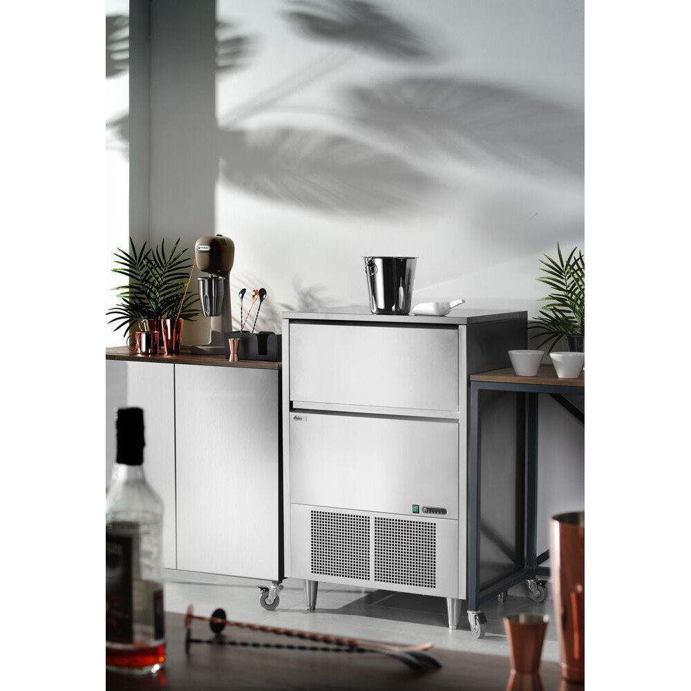 De Arktic IJsblokjesmachine produceert tot 90 kg helder ijs per dag. De ijsblokjesmachine beschikt over indicatoren die waarschuwen voor een laag waterniveau en een volle ijscontainer. Inclusief functies voor automatisch ontdooien en automatisch reinigen. De grote capaciteit van de machine maakt hem perfect voor bars, restaurants of andere drukke locaties.